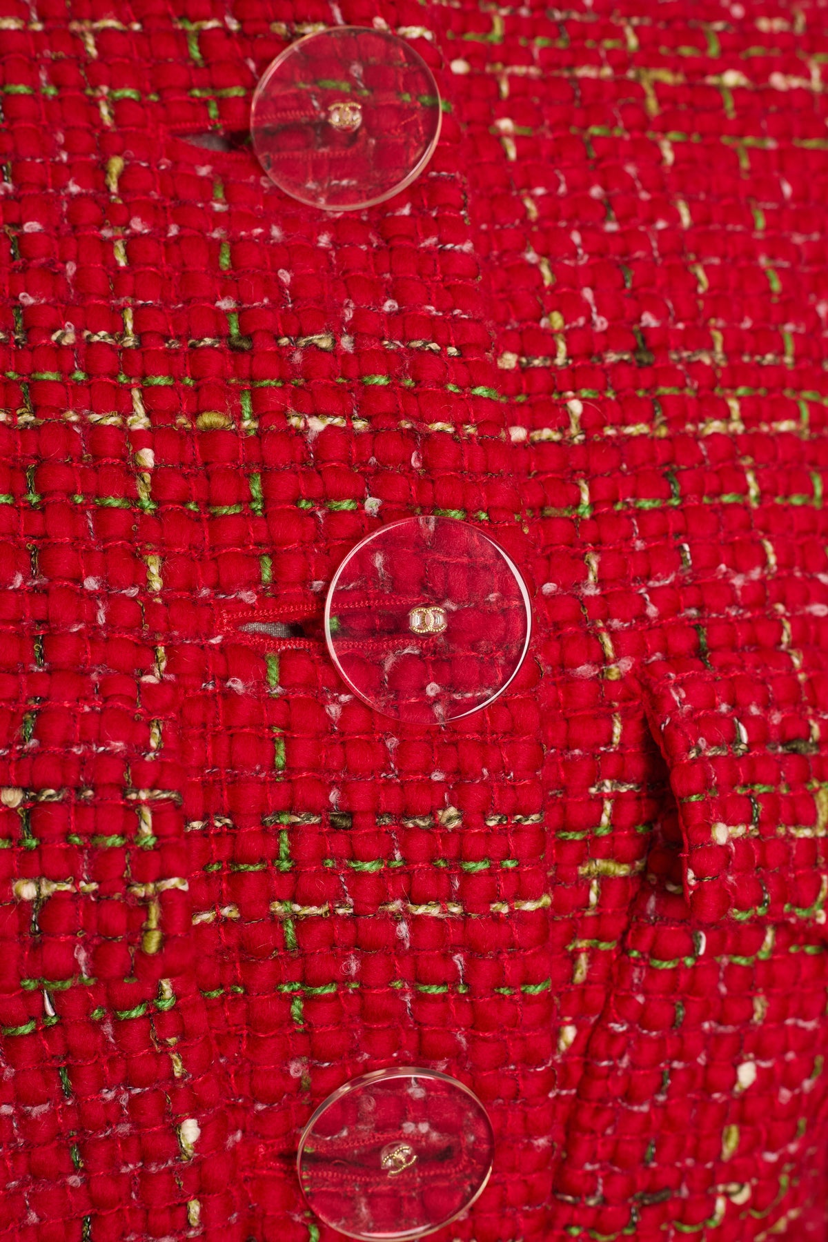 - XXL lucite buttons with encased gold CCs