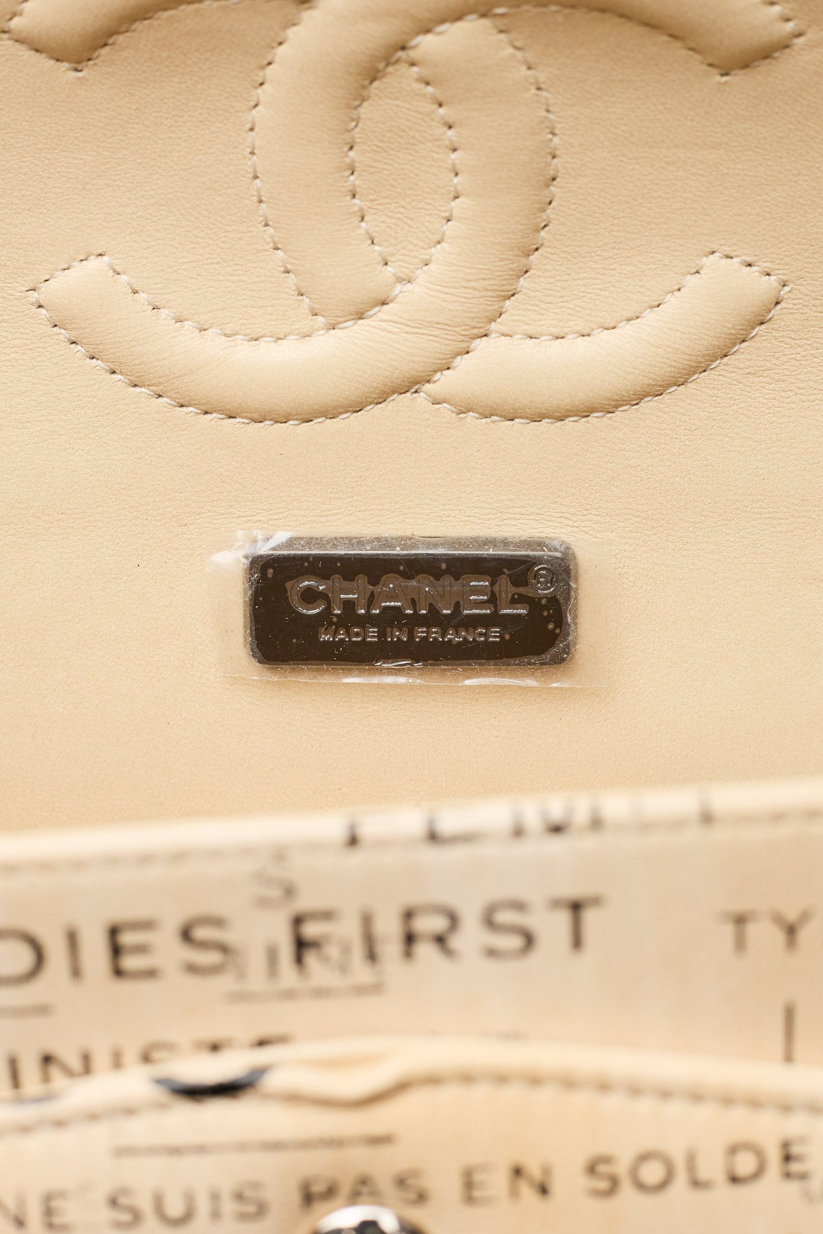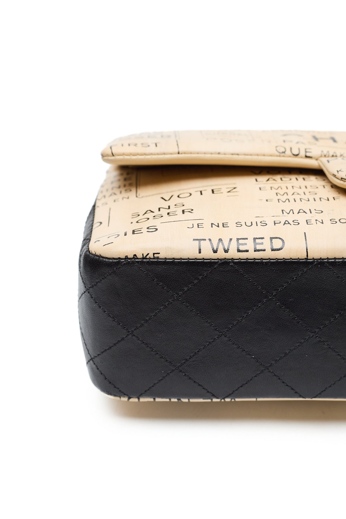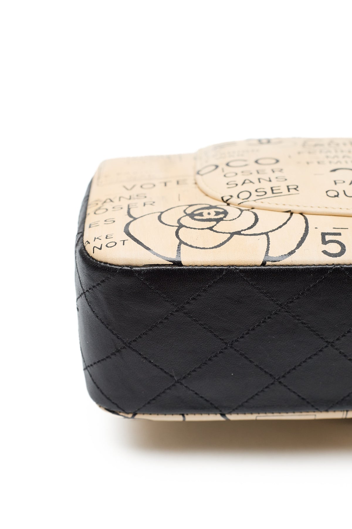 - Various Chanel slogans, logos, and brand designs throughout exterior print
