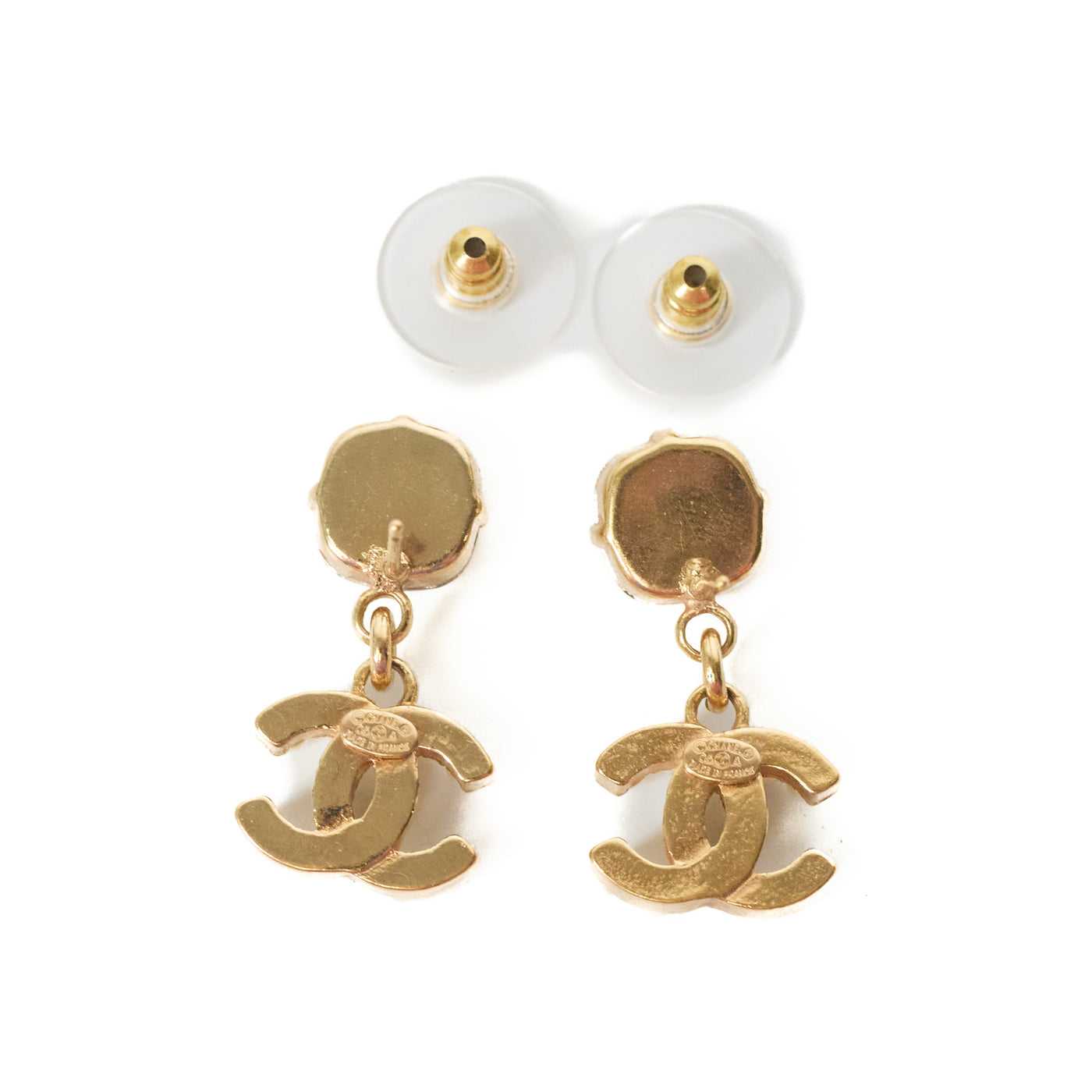 Chanel Green Crystal and Faux Pearl CC Drop Earrings