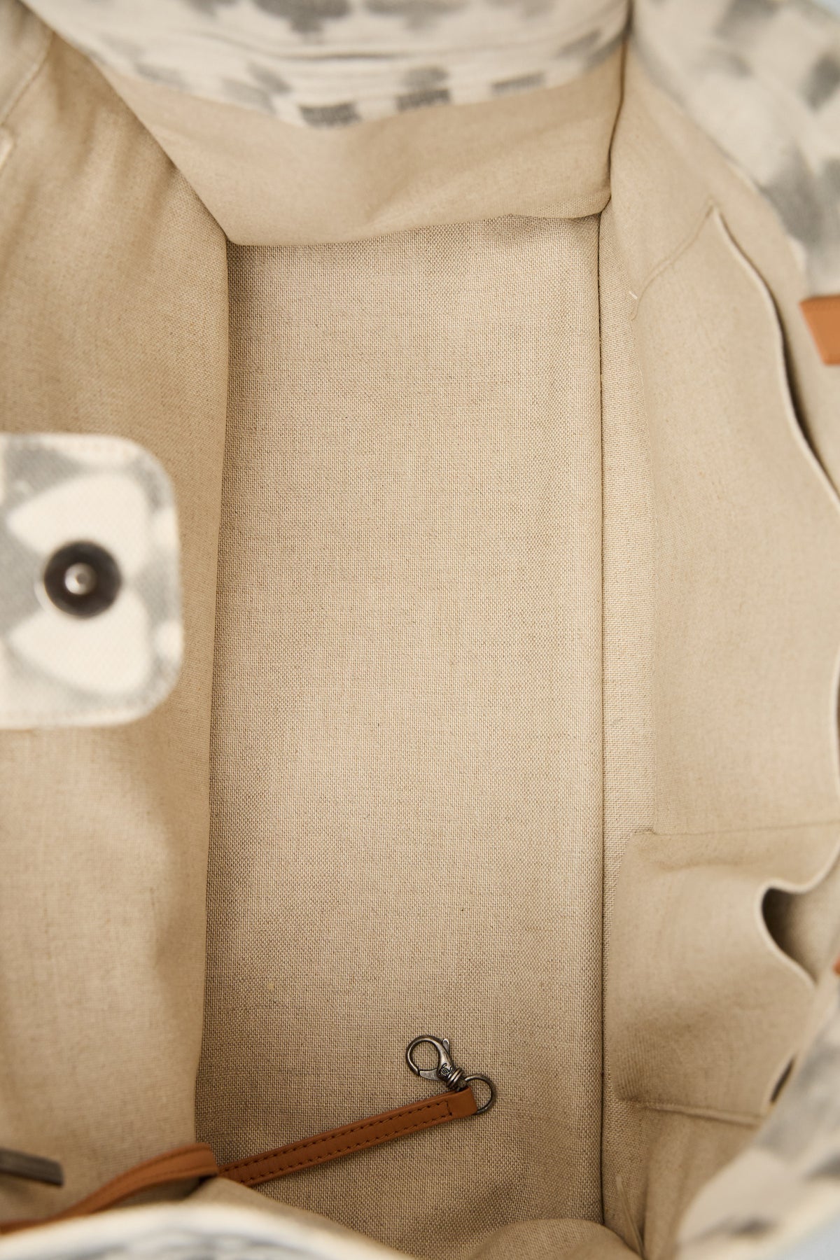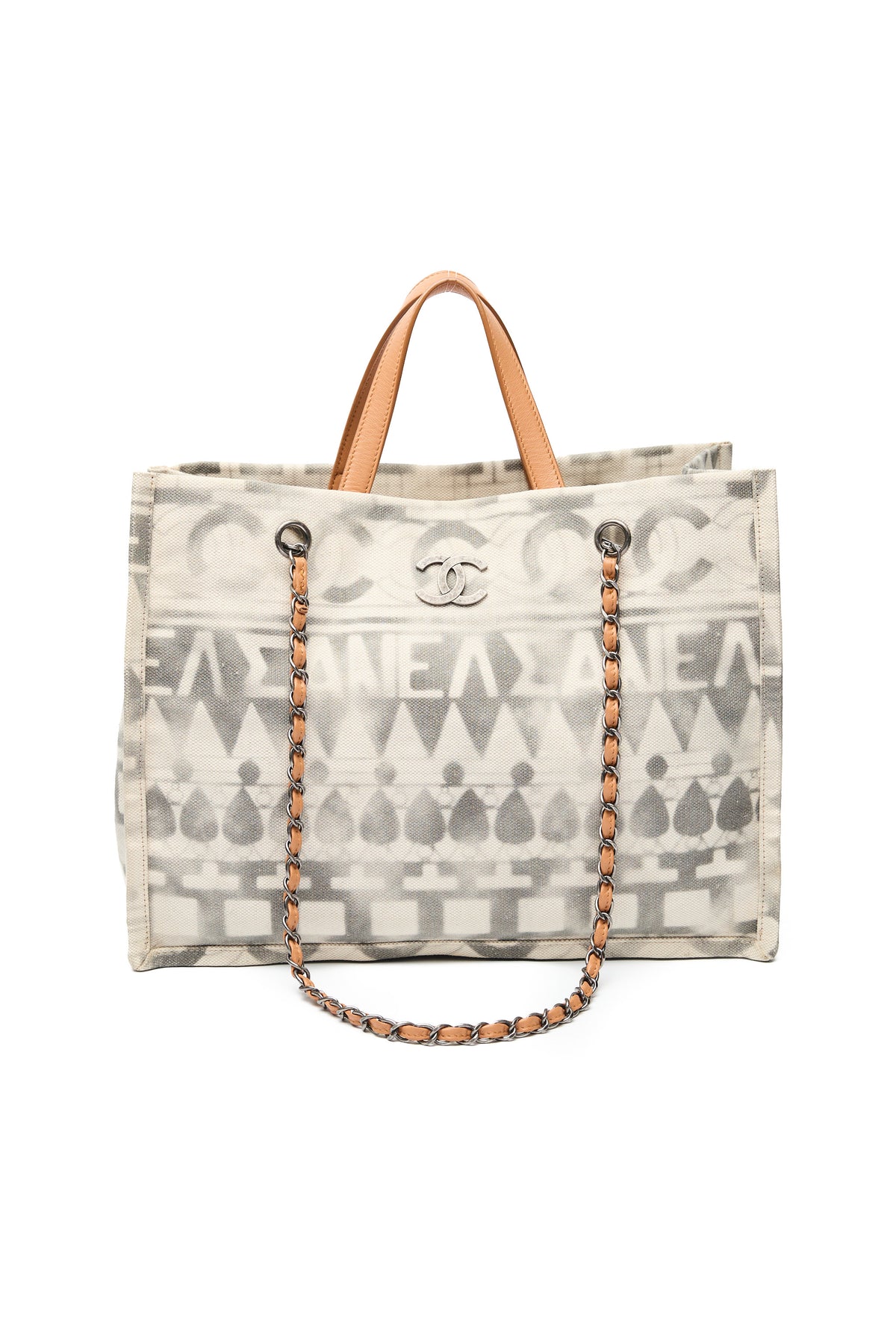 - Greece inspired graphic with interlocking CC details throughout exterior canvas