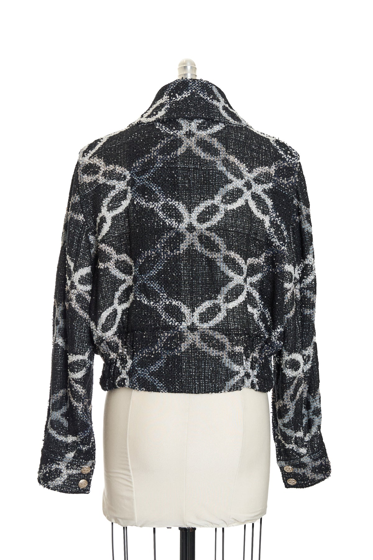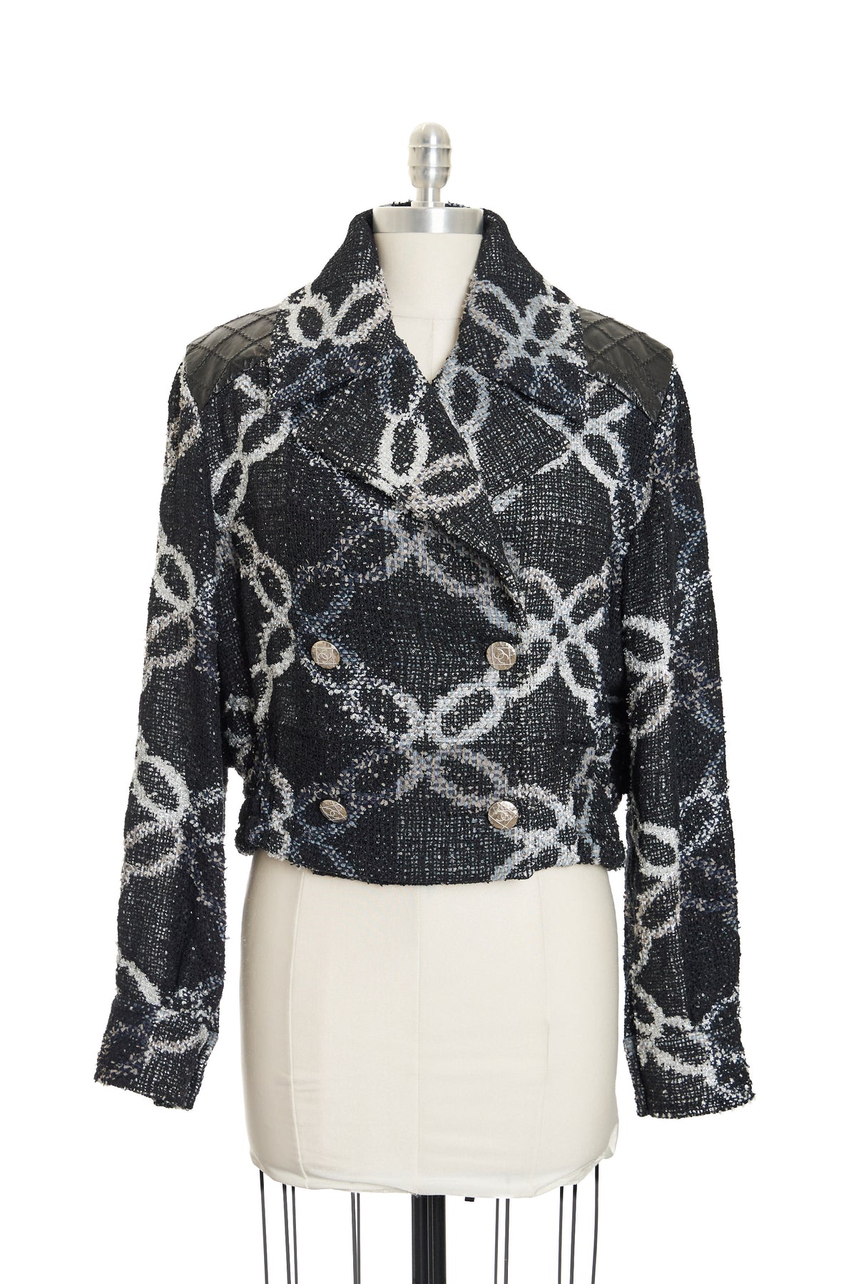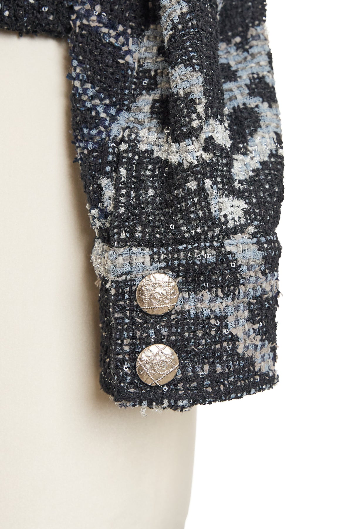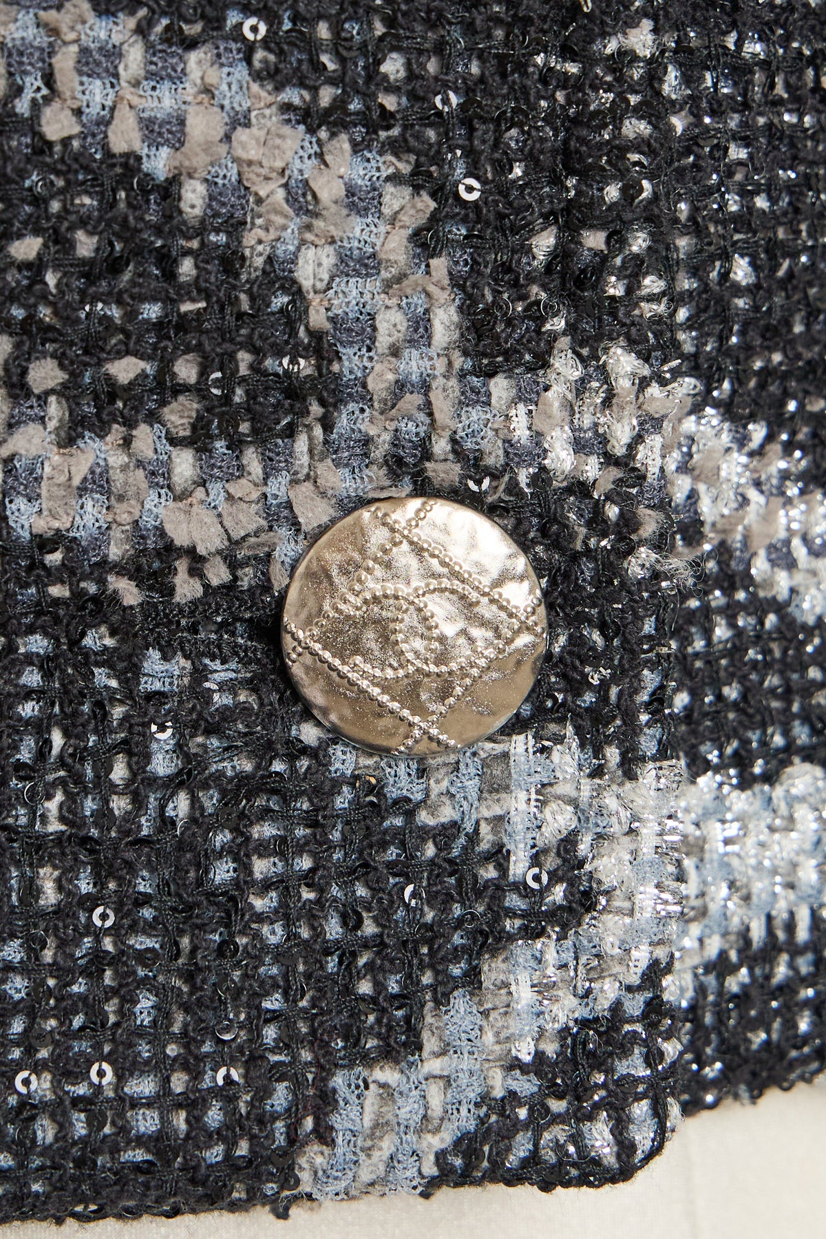 -Textured silver buttons with center CC deailing