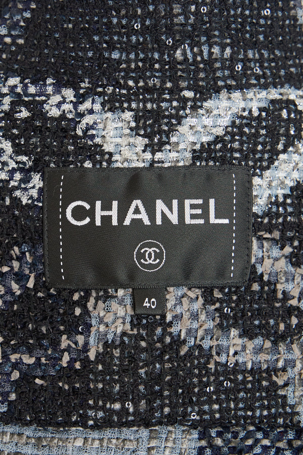 Chanel Sparkly Black and Gray Tweed Jacket with Leather Accents to Shoulders