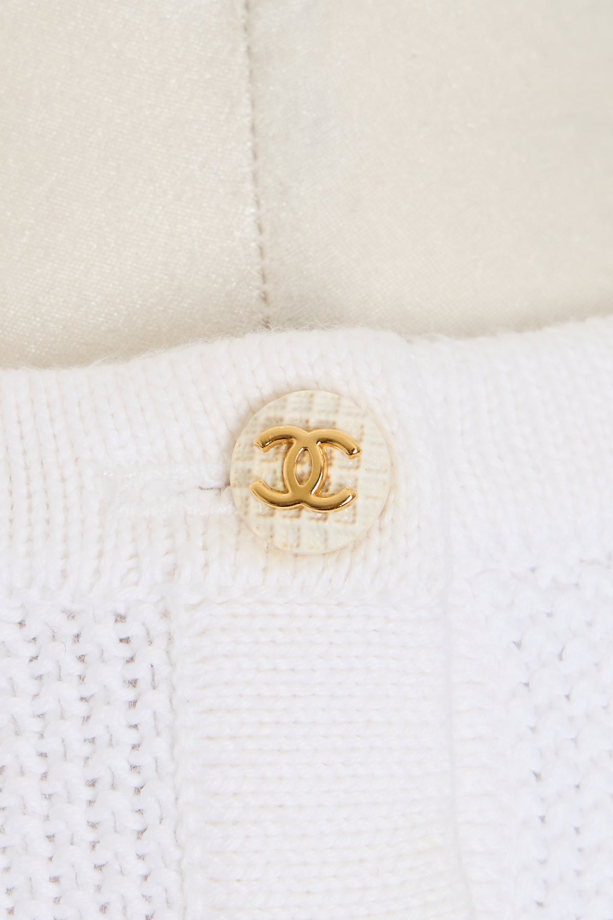 Chanel Vintage Back Button White Knit Vest and Chanel Vintage White Knit Button Up Cardigan