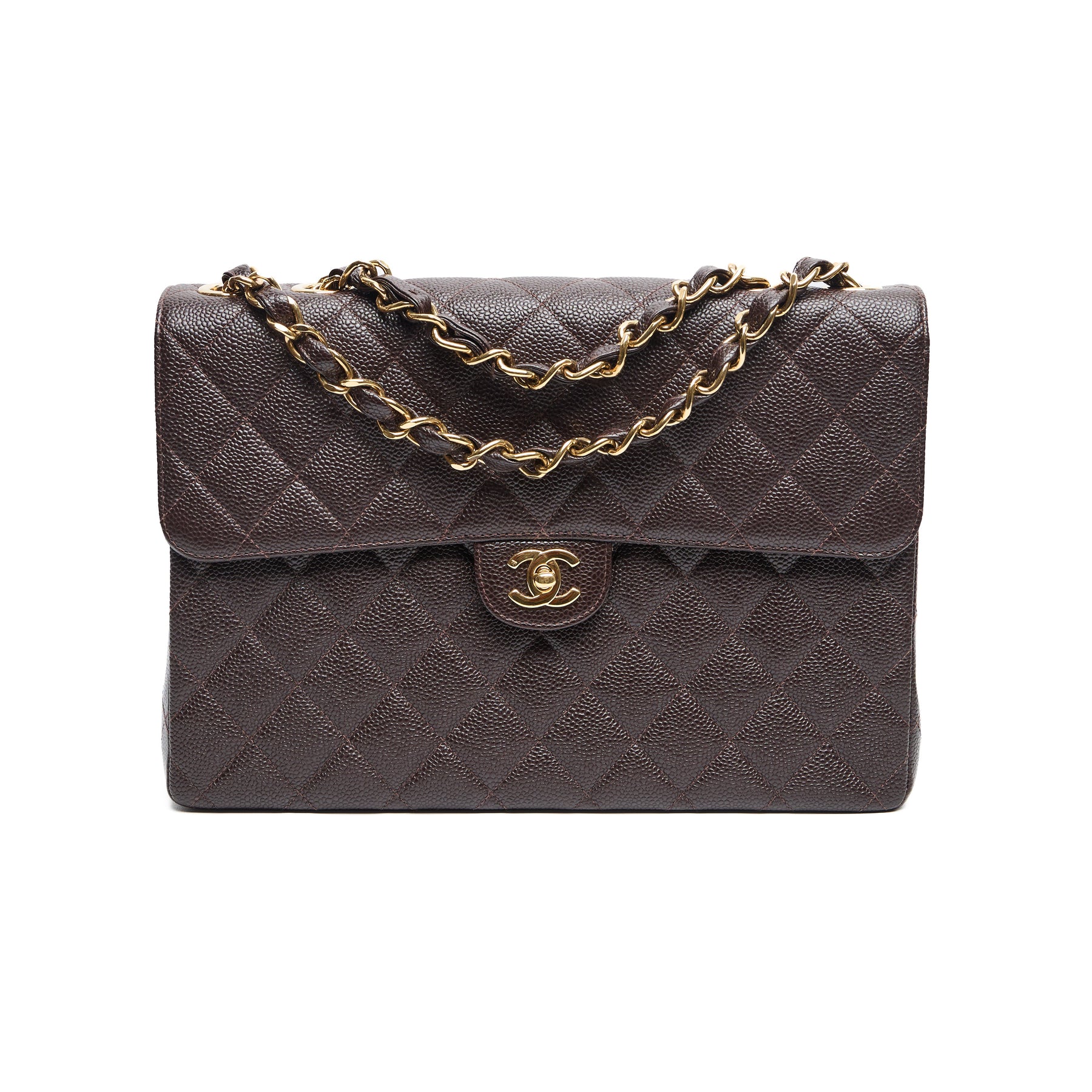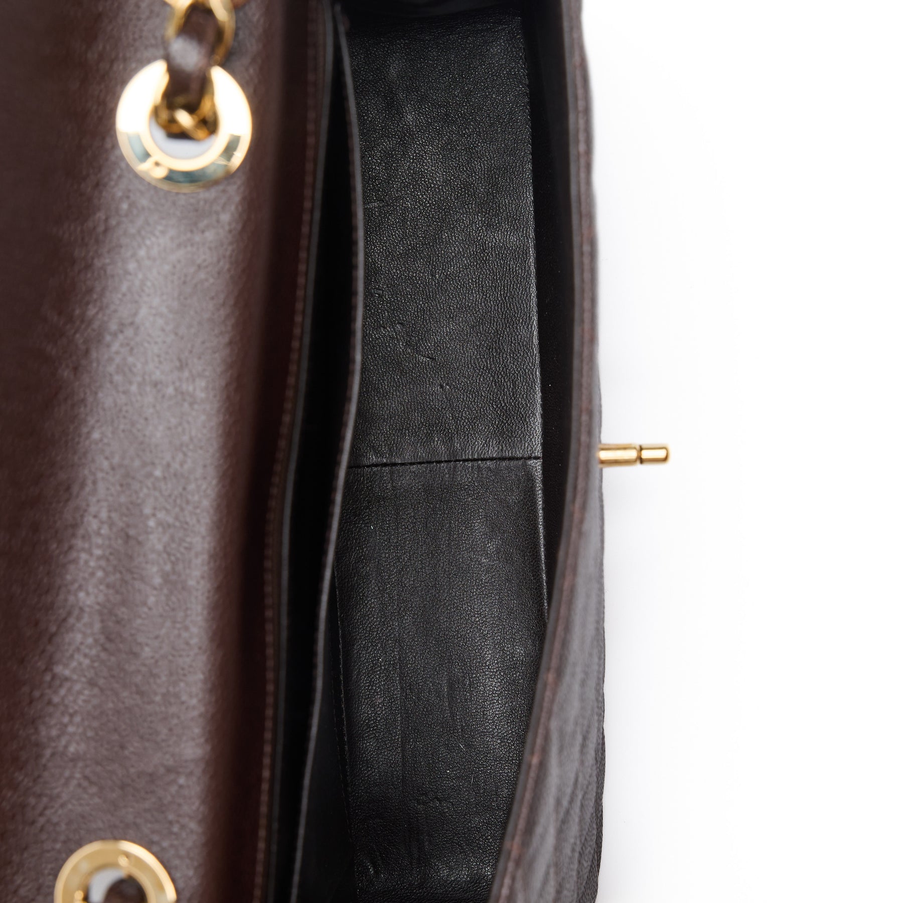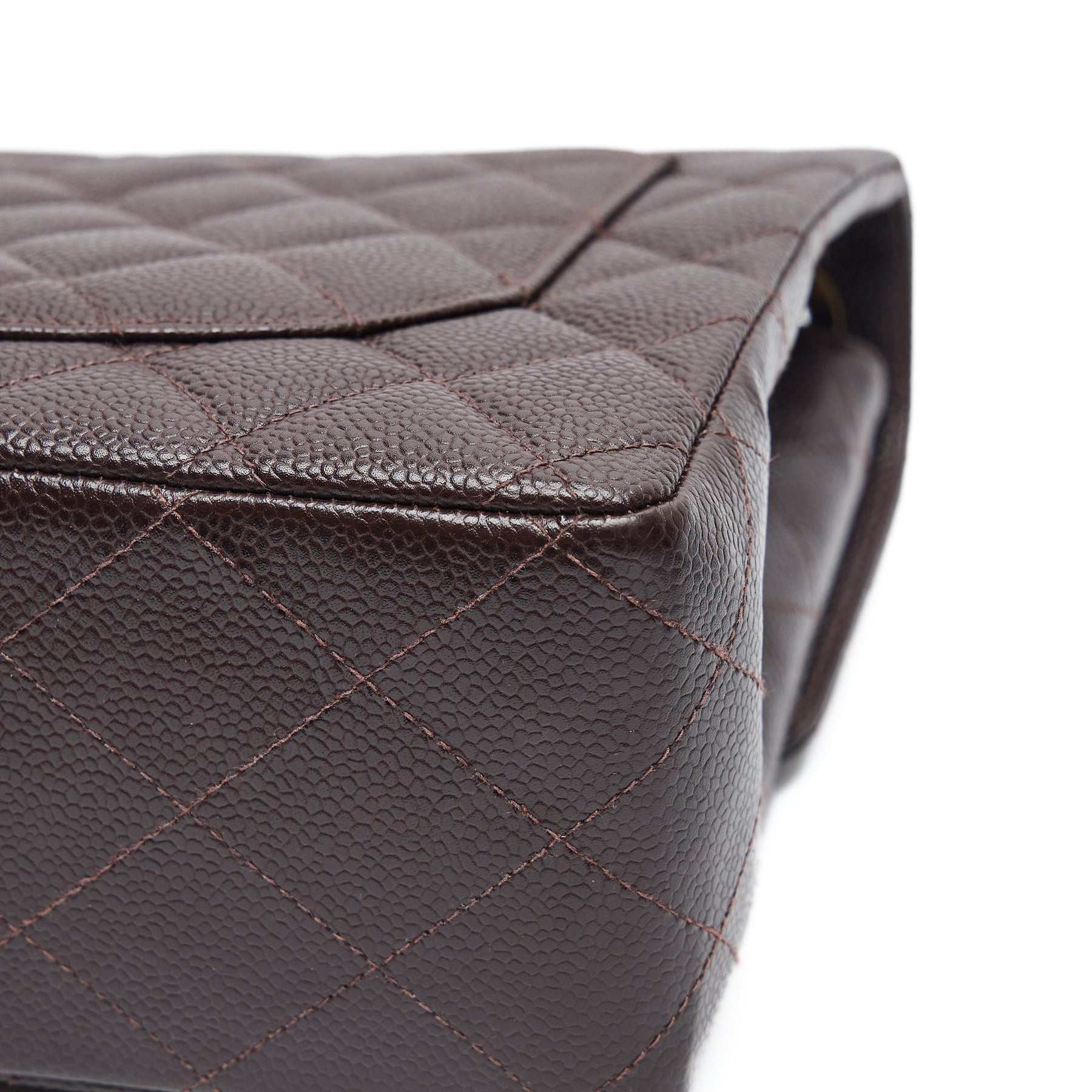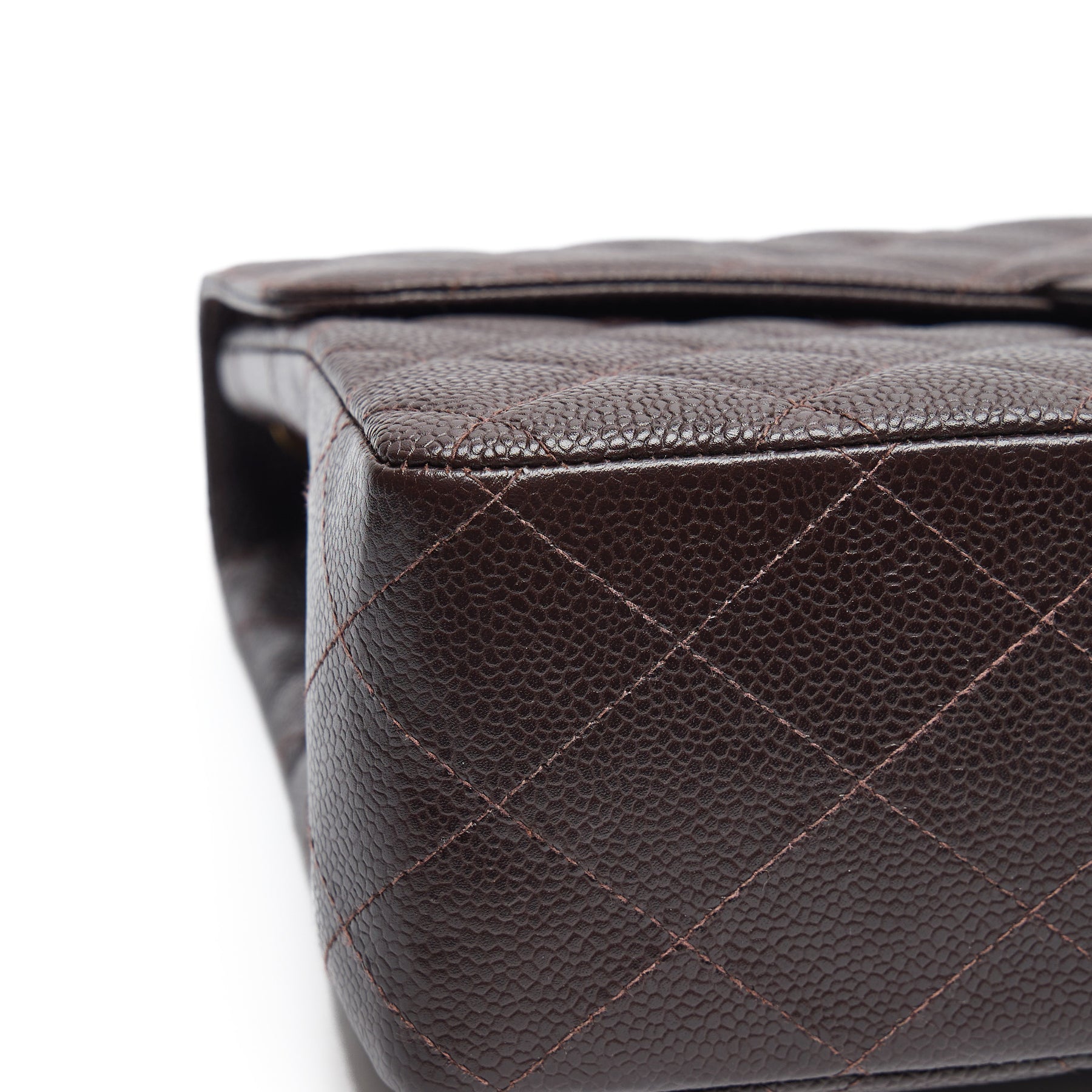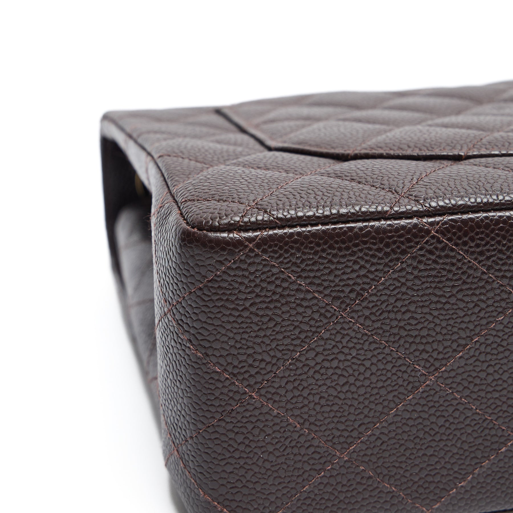 - Stunning dark chocolate brown caviar leather