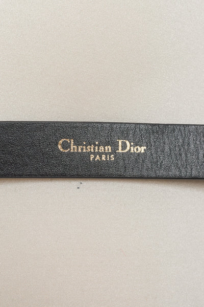 Christian Dior Black Leather Belt with Gold CD Buckle 70